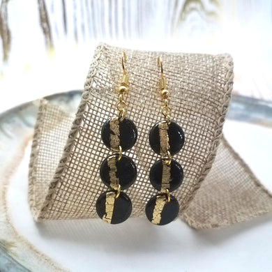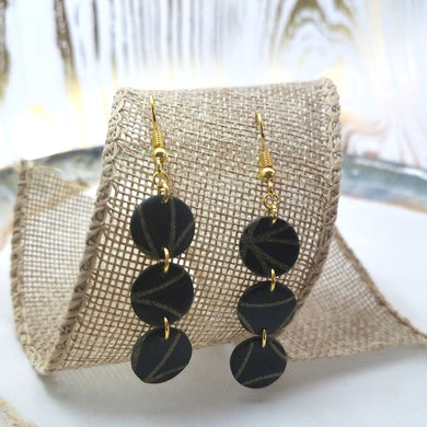 S Triple Circle Shaped Black With Gold Stripe Handmade Dangle Handmade Earrings