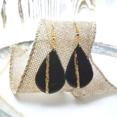 Teardrop Shaped Black With Gold Stripe Handmade Dangle Handmade Earrings