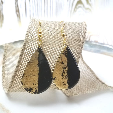 Teardrop Shaped Half Black Half Gold Handmade Dangle Handmade Earrings