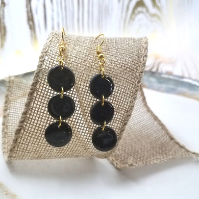 S Triple Circle Shaped Black Handmade Dangle Handmade Earrings