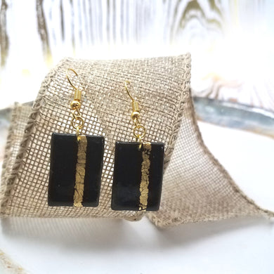 Rectangle Shaped Black With Gold Stripe Handmade Dangle Handmade Earrings