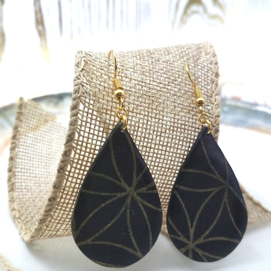 Teardrop Black With Gold Flower Pattern Handmade Dangle Handmade Earrings