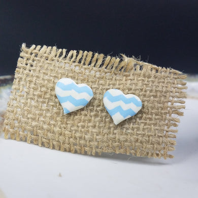Heart Chevron Pattern Blue & White Post Handmade Earrings