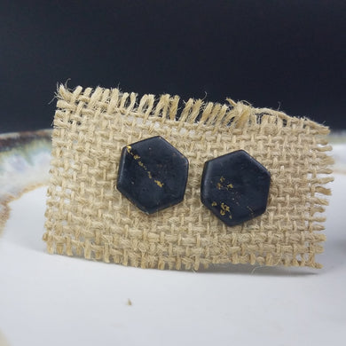 Hexagon Speckled Pattern Black & Gold Post Handmade Earrings