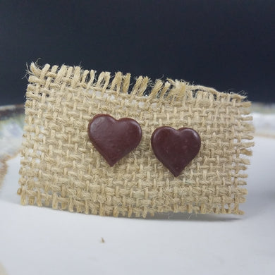 Heart Solid Pattern Brown Post Handmade Earrings
