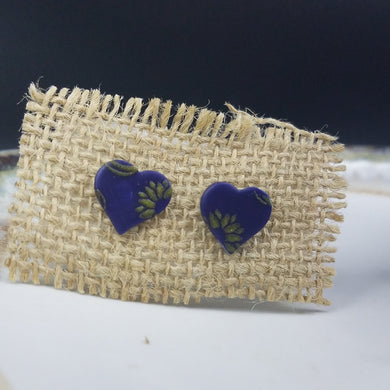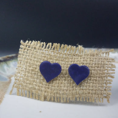 Heart Solid Pattern Blue Post Handmade Earrings