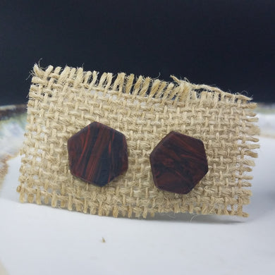 Hexagon Wave Pattern Blue & Brown Post Handmade Earrings