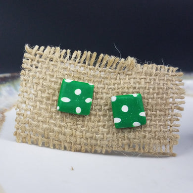 Square Polkadot Pattern Green & White Post Handmade Earrings