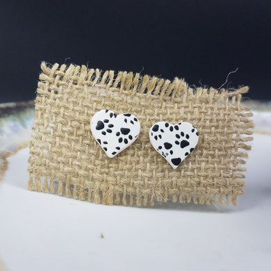Heart Pawprint Pattern Black & White Post Handmade Earrings