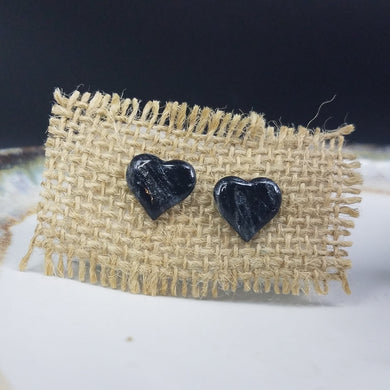 Heart Marble Pattern Black & Silver Post Handmade Earrings