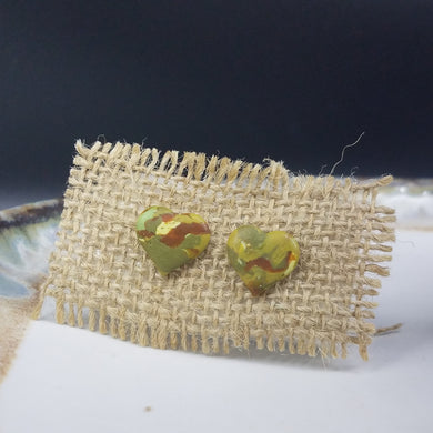 Heart Camoflauge Pattern Green Post Handmade Earrings