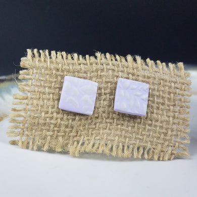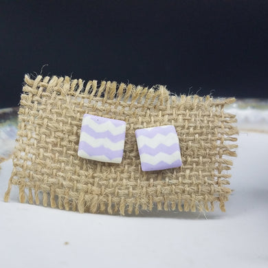 Square Chevron Pattern Purple & White Post Handmade Earrings