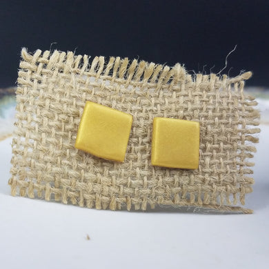 Square Solid Pattern Gold Post Handmade Earrings