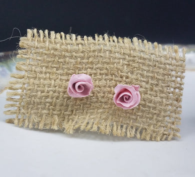 Rose Solid Pattern Pink Post Handmade Earrings