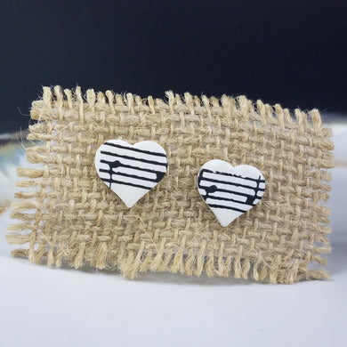 XS Heart Music Pattern Black & White Post Handmade Earrings
