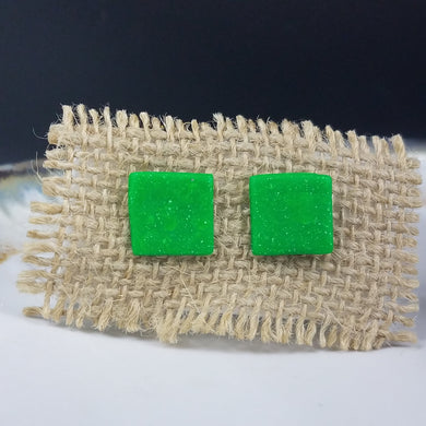 Square Speckled Pattern Green & Silver Post Handmade Earrings