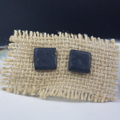 Square Speckled Pattern Black & Gold Post Handmade Earrings