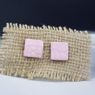 Square Floral Pattern Pink Post Handmade Earrings