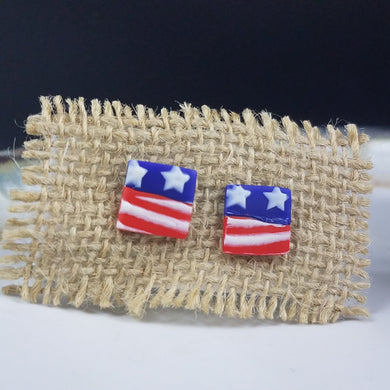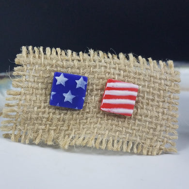 Square Stars & Stripes Pattern Blue & Red Post Handmade Earrings