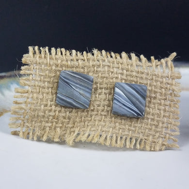 Square Wave Pattern Black & Gray & White Post Handmade Earrings