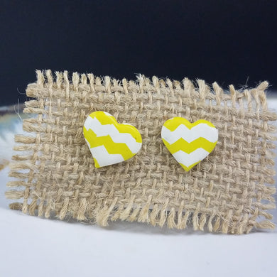 Heart Chevron Pattern White & Yellow Post Handmade Earrings