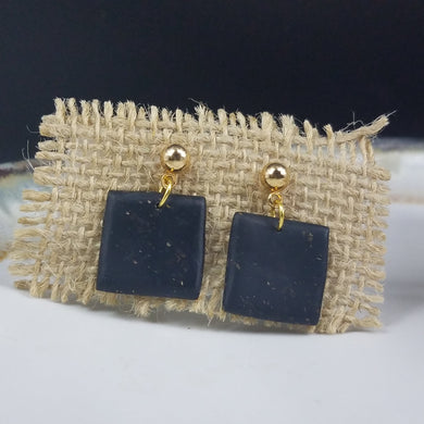 Square Speckled Pattern Black & Gold Post Dangle Handmade Earrings