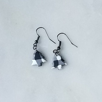 White Buffalo Plaid Polymer Clay Christmas Tree Mini Dangle Handmade Earrings