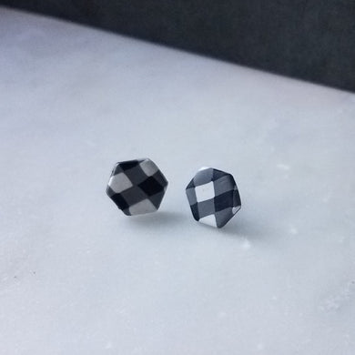 White Buffalo Plaid Polymer Clay Hexagon Post Earring