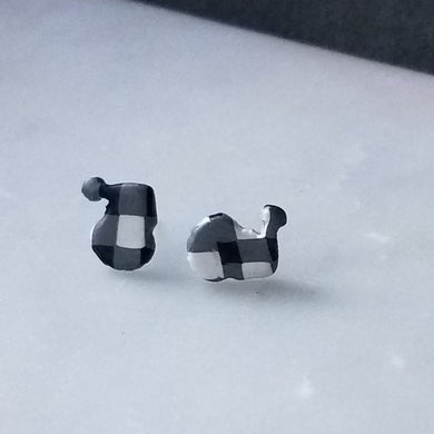 White Buffalo Plaid Polymer Clay Square Post Earring
