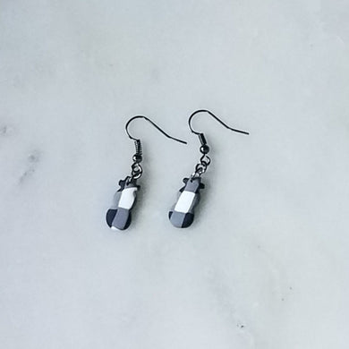 White Buffalo Plaid Polymer Clay Rectangle Dangle Handmade Earrings