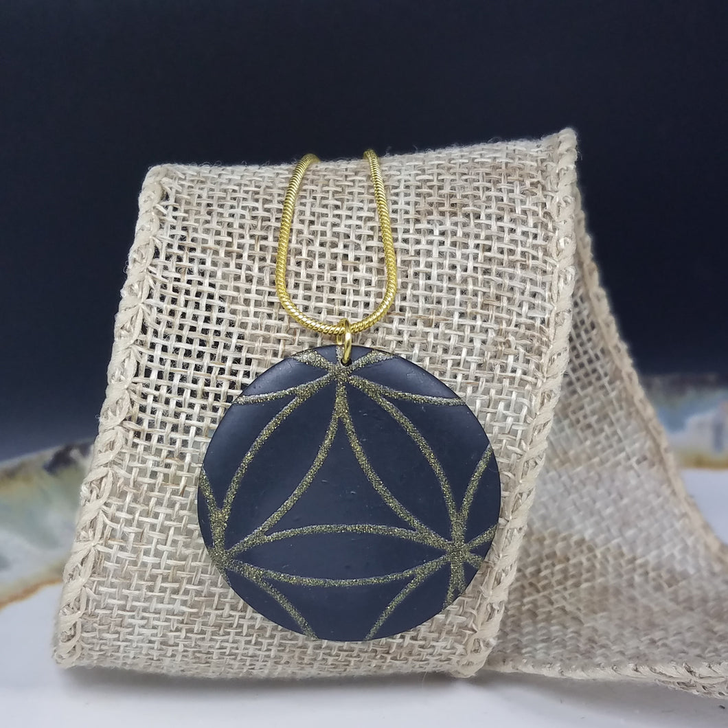 Circle Floral Black & Gold 22" Snake Chain Necklace.