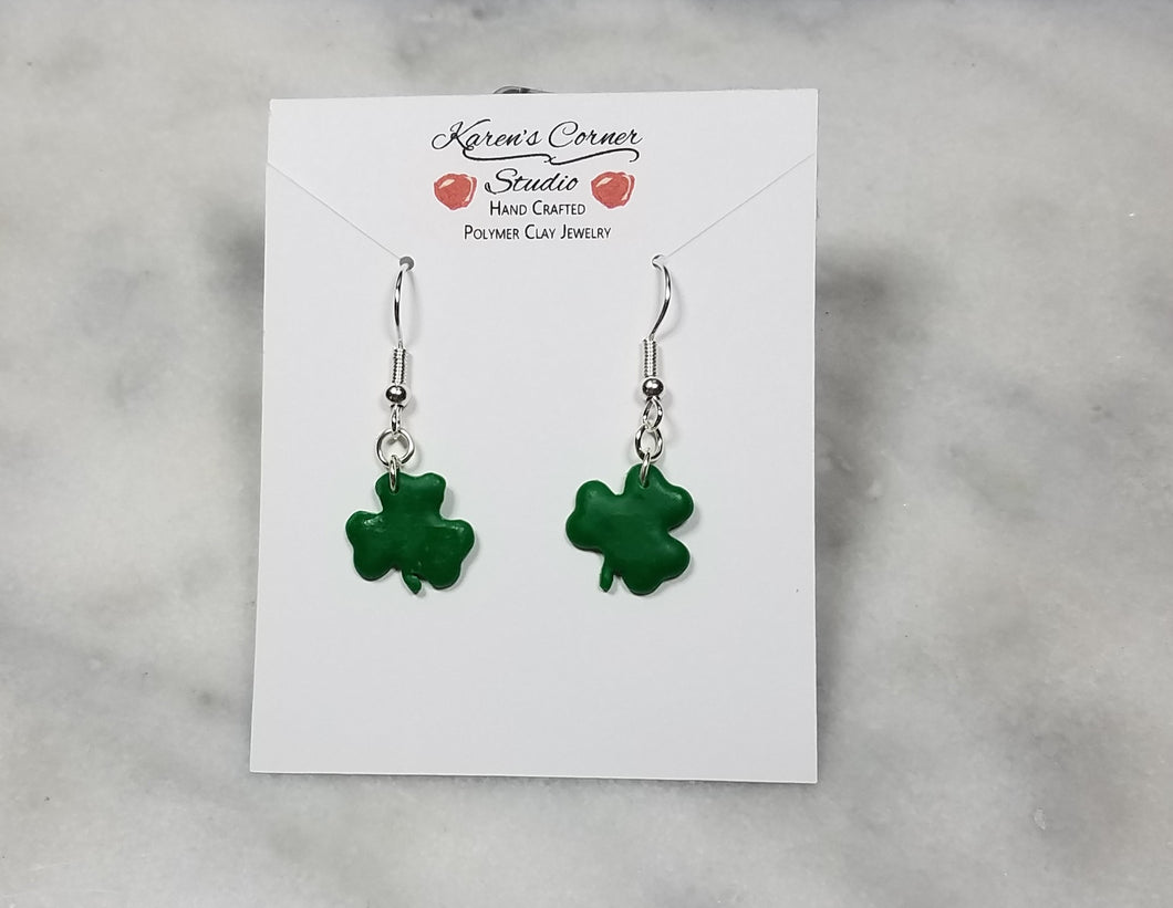Solid green small shamrock made from polymer clay.