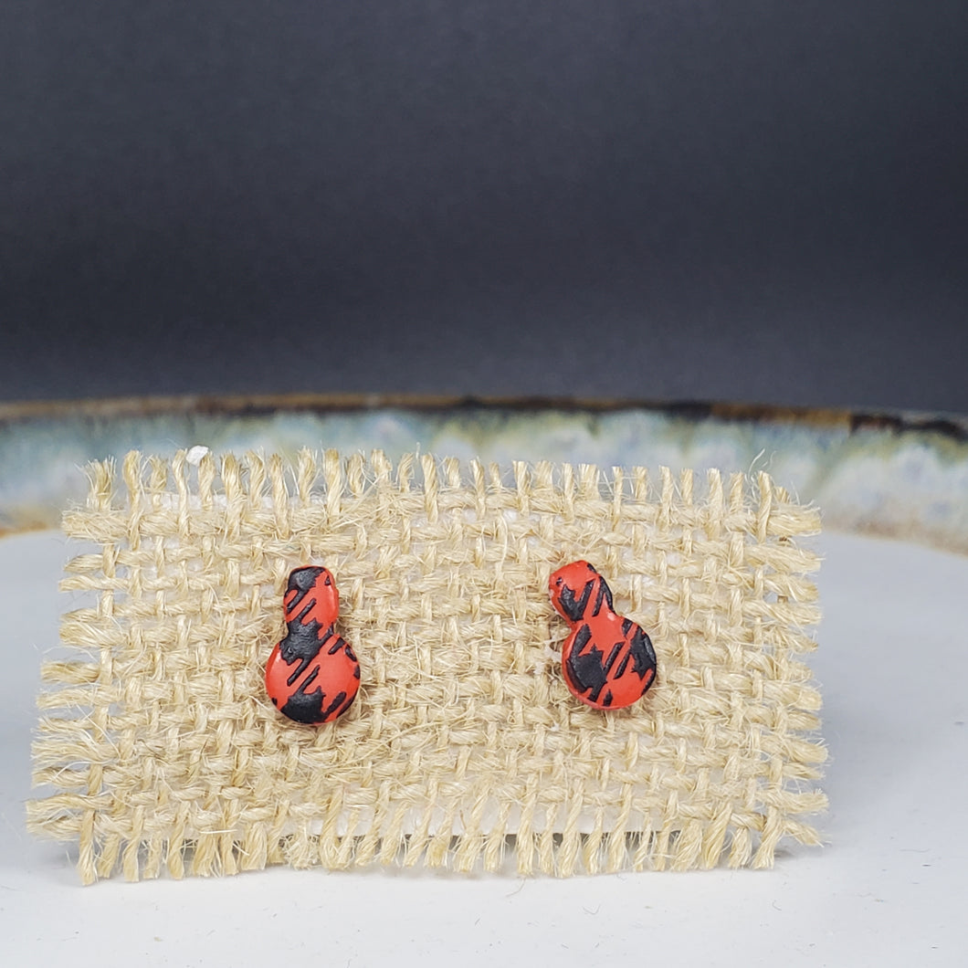 Handmade snowman-shaped dangle earrings in a black and red buffalo plaid pattern.